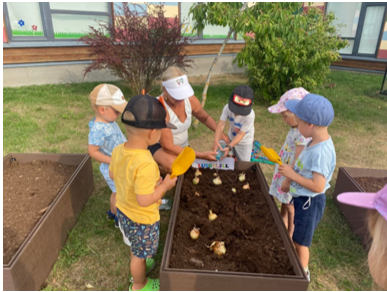 Luigelille rühma lapsed kastavad sibulaid.